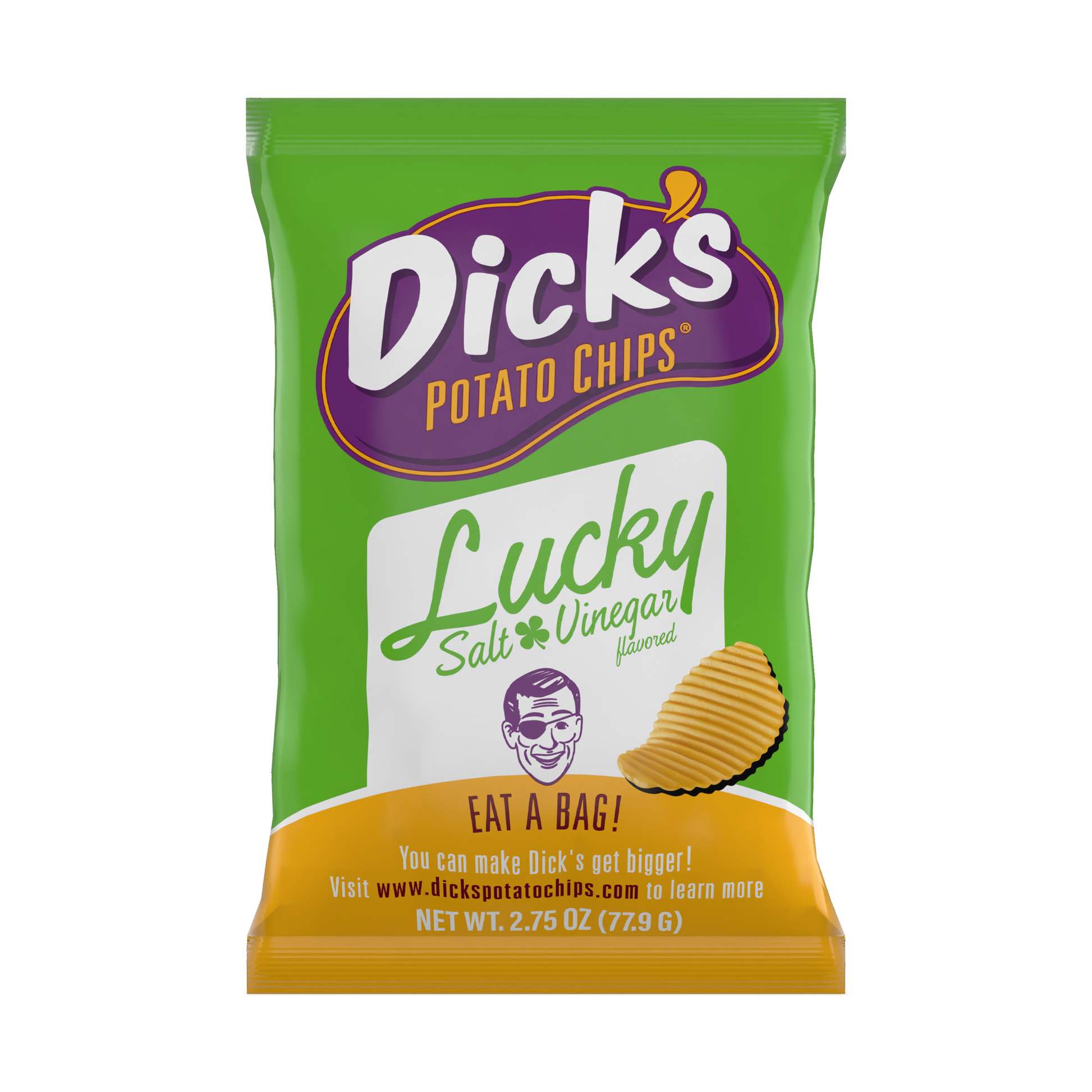 Why are they called Lucky Dick's? Lucky isn't a flavor. True! But with Dick's, sometimes you need to go a little deeper. The Irish were among the first to celebrate the salt and vinegar potato chip. In that vein, we created Lucky Dick's. We hope you're getting Lucky!